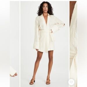 NWOT! Nanushka yori dress in “white” v-neck long sleeve collared gauzy. size S.