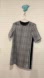 Grey with blue &black laid pattern with-a cute button down black stripe down the side.