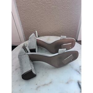 NWOT Steve Madden Rhinestone Silver Open Toe Block Heels Dylann Crystal New 10M Strap