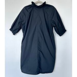 Sundays Spence Black Cotton Mini Dress Puff Sleeve V-Neck Shift Style Small
