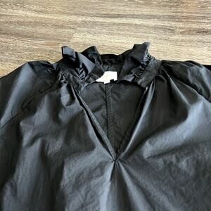 NWOT Sundays Spence Black Cotton Mini Dress Puff Sleeve V-Neck Shift Style Small