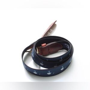 Thomas Bates Carolina Crescent Palmetto Moon Navy Blue Leather Needlepoint Belt