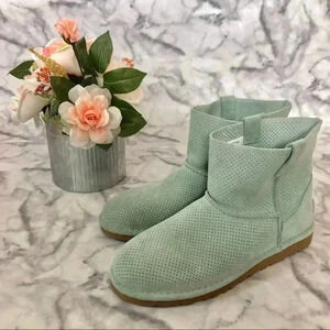 NWOT UGG Women's Classic Unlined Mini Perf Booties Light Blue Suede Size 9