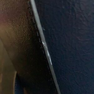 NWOT Gorgeous navy blue 100% Polyester Handbag w/attached shoulder strap. I absolutely love the shape of this handbag. The lining snaps in so can easily be removed for cleaning. Wrinkly faux leather body. Lining zips shut, body snaps shut over lining. One side of each handle has a knotted detail & the shoulder strap is attached to the other side of each handle. Polished silver hardware. Silver feet on bottom of bag, the finish in the feet does show some scratching.