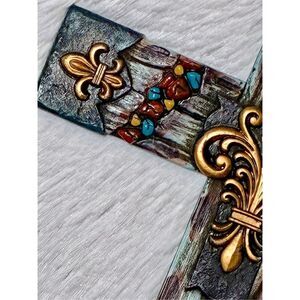 NWOT Montana West Hand Painted 12" Fleur-De-Lis Wood Wall Cross Adorned With Neutral Resin Stones.