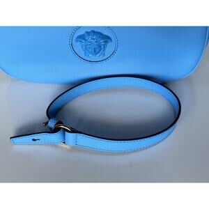 NWT $1875 Versace Medusa Head Calf Leather Blue Medium Hobo Bag 1000699 IT