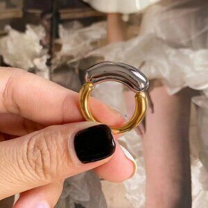NWT 18K Gold Plated Minimalist Statement Chunky Ring Sz. 7 Two-tone Avant Garde