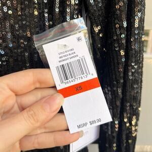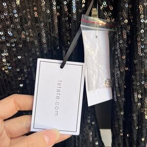 NWT 1.State Black Drape Back Sequin Top Size XS
