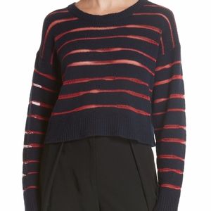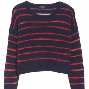 NWT $225 Rag & Bone Penn Sheer Stripe Crop Red / Blue Sweater in size Small!