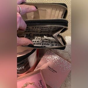 BRAND NEW! PERFECT GIFT! 🎁 NWT Selling for almost 70% off Just the Wristlet Wallet with Charm is $35 MSRP with tag still on. Set includes all pictured, Get 3 pieces! Set has 6 full-size washcloths, super cute charm bracelet with box, and an adorable wristlet wallet w/ charm 💋 BETSEY JOHNSON XOXO Stylish Juicy Couture accessory set featuring a black and pink color scheme.