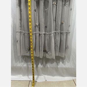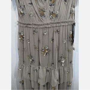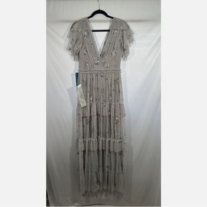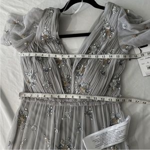 NWT $598 Mac Duggal [ 6 ] Ruffle Tiered Embellished Flutter Sleeve Gown Grey