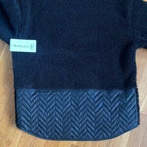 NWT ATHLETA black Cozy Sherpa Fleece Snap Pullover Sweatshirt Size L