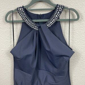 NWT Alex Evenings Sheath Compression Dress Embellished Halter Style Neckline 14