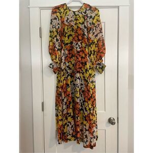 NWT Alexander McQueen HISANO FLORAL-PRINT SILK-CHIFFON MIDI DRESS IN ORANGE