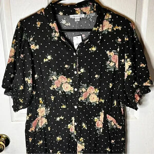 NWT American Eagle Polka Dot Floral Puff Sleeve Button Front Shirt Dress Size XL