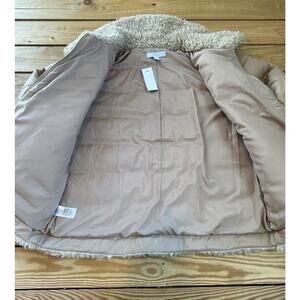 NWT Ann Taylor Weekend Sherpa Trim Puffer Jacket Size Medium Women’s Tan