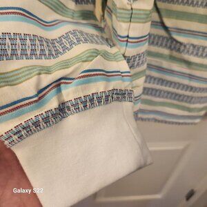 NWT Anthropologie Striped Zip Up Jacket with Hoodie. Size S/M. No rips/stains or tears. Listing as a Medium, because it is oversized. Material: Cotton/Tencel/Elastane/Poly Mix. No rips/stains or tears.    Measurements: Pit to Pit: 29 inches (sounds large, but the arms span out/so not tight at pit areas). Top of shoulder to bottom 22 inches. Has pockets. Attached hoodie. Smoke free home. No odors. All offers are welcome. Thank you!