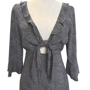 New with tags Auguste the Label Diamond Rumba Sleeved Mini Dress in black with white diamond dots.