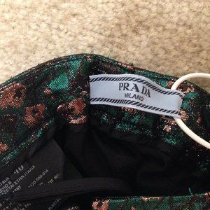 NWT Auth Prada metallic green floral print kick flare ankle pants SZ IT 40 US 6