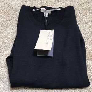 New! BURBERRY size medium black scoop neck merino wool sweater with pleated cuff which can be folded if needed.