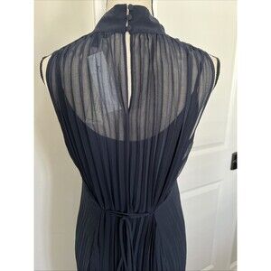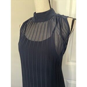 NWT Banana Republic Pleated Sleeveless Midi Dress Navy Mock Neck Small Petite