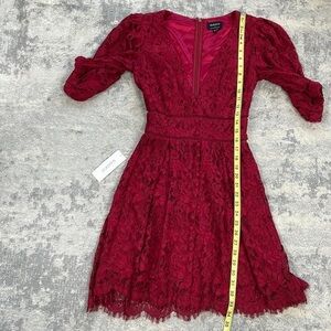 NWT Bardot Kira Red Button Front Lace Mini Dress Puff Sleeve V Neck Sz 2