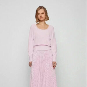 NWT Boss SCOOP-NECK FAVANNAH SWEATER IN COTTON SILK Pastel Pink M
