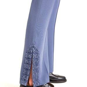 Step into refined elegance with these NWT Cinq à Sept Kayden Pants in a sophisticated slate blue hue. Crafted with luxurious fabric, these tailored pants feature stunning beaded embellishments that add a touch of glam to the sleek silhouette. The split seam hem offers a modern, fashion-forward edge, perfect for showcasing statement heels. Designed with a mid-rise waist and slim fit through the leg, they blend structure with feminine detail effortlessly. A concealed side zip ensures a smooth finish. Ideal for upscale events, dinners, or chic office wear. Size 0 offers a streamlined and flattering fit.