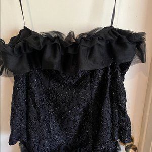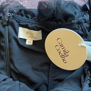 NWT Camila Coelho Suzette Off Shoulder Mini Dress Size XS Black Tulle Ruffle