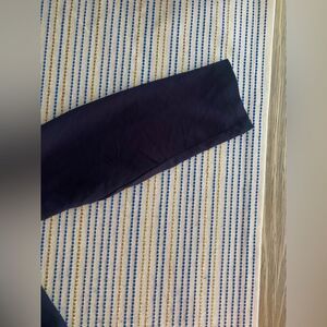 Navy blue long-sleeved V-neck dress with faux leather stitching detail, new dress with tags