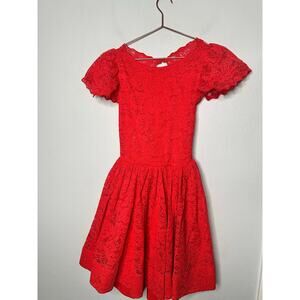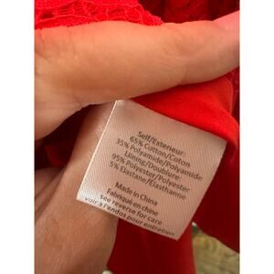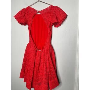 The Caroline Constas Marguerite Mini Dress in vibrant red is a romantic and polished standout piece. Crafted from a cotton-blend lace (65% cotton, 35% polyamide), it features a delicate lace overlay, a flattering round neckline, and short sleeves. The open back with a keyhole button-and-loop closure adds a touch of allure, while the pleated skirt offers graceful movement. Measuring approximately 32.75 inches from shoulder to hem, this size XS dress is ideal for cocktail parties, weddings, or special occasions. Dry clean only