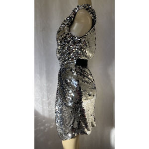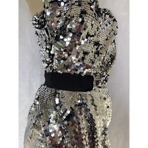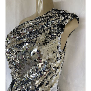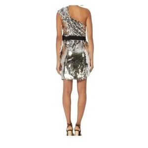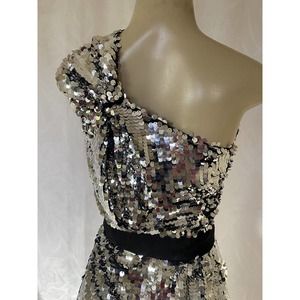 NWT Carven Sequin Dress One Shoulder Silver Metallic Asymmetric Sheath 3…