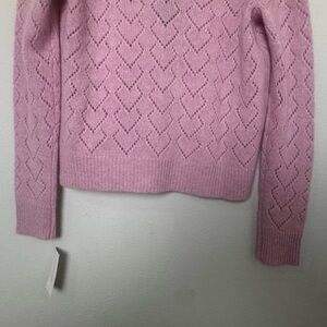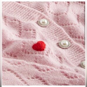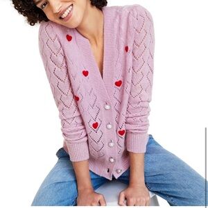 NWT Charter Club 100% Cashmere Pink Crochet Heart Pointelle Button Cardigan M