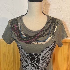 NWT Christian Audigier Spirit Beads Crew Neck Tee Sz-M