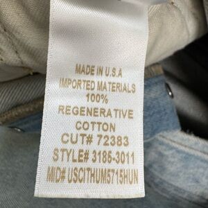 It includes a classic five-pocket style and a button fly for easy wear. Made from 100% cotton, it offers both comfort and durability. Machine wash cold. Made in the USA.