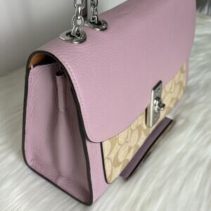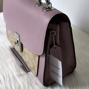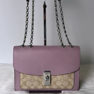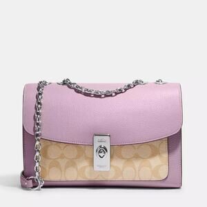 NWT Coach Lane Shoulder Bag In Signature Canvas/PebbleLeather/ Khaki-Purple