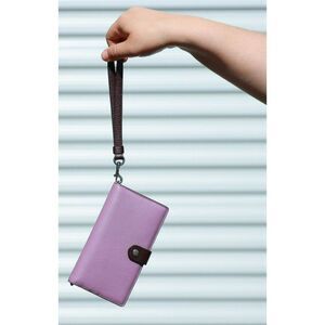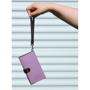 Crafted in polished pebble leather, this compact wristlet is designed with an interior compartment to store your phone. The slender silhouette features seven card slots, a zip coin pocket and a detachable wrist strap.