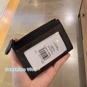 NWT Coach Mini Skinny ID Case CW870 Walnut Brown Black Signature Canvas