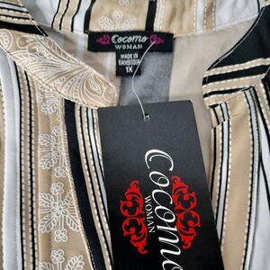 NWT Cocomo Plus Size 1X Beige Multi Color Stripe Print Short Flutter Sleeve Top