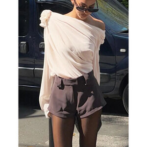 NWT Commense Chiffon Semi-Sheer One Shoulder Asymmetrical Blouse Apricot Size S