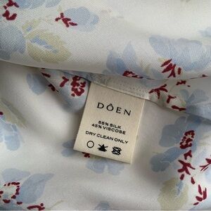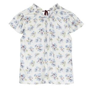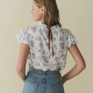 NWT Doen Yvie Silk Ruffle Short Sleeve High Neck Top Bleu Frolicking Floral