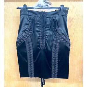 NWT Dolce & Gabbana Runway Black Lace-Up Stretch-Satin Mini Skirt IT 44 US L
