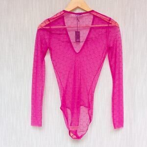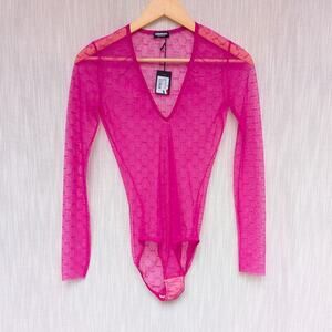 NWT Dsquared2 Pink All-Over Monogram Sheer Logo Long Sleeve Body, size S