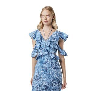 NWT ELLIATT Snow Printed Linen Maxi Gown In Blue