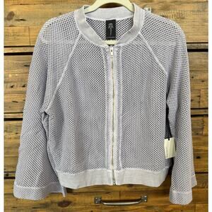 NWT Electric&Rose Gray Mesh Perforated Sheer Bomber Jacket Sz S