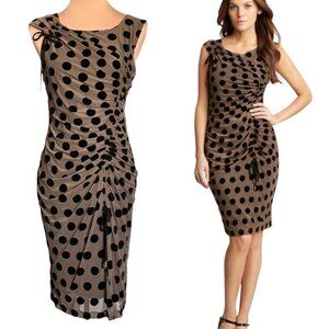 NWT Eva Franco Polkadot Sheath Dress Sz.M Brown Sleeveless Career Cocktail