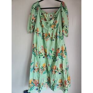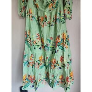 NWT Farm Rio Anthropologie Off-The-Shoulder Tiered Floral Midi Dress Size LP Petites Green #9J416