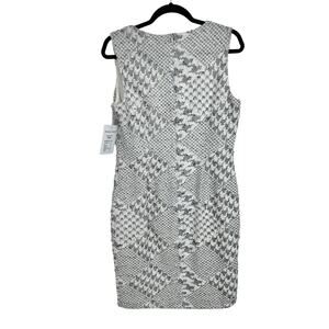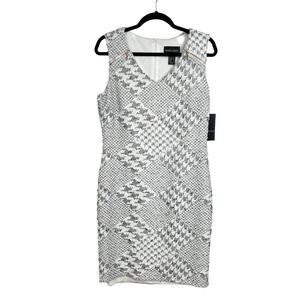 NWT Frank Lyman Tweed Houndstooth Sequin Sleeveless Sheath Dress 10 White Grey