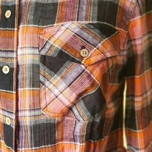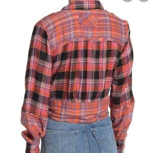 NWT Free People First Bloom Plaid Buttoned Tie Front Blouse Small