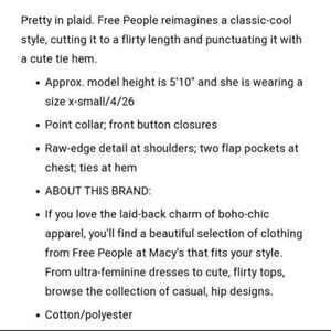 Free People First Bloom Plaid Buttoned Tie Front Blouse
